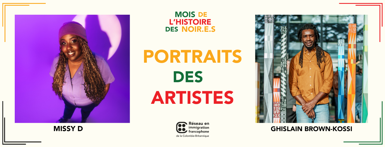 Pour cette édition du Mois de l’Histoire des Noir.e.s, nous avons sollicité quelques artistes Noir.e.s vivant en Colombie-Britannique pour apprendre davantage sur qui ils sont. Avec des parcours et des métiers assez différents, ils incarnent les valeurs de communauté, de rassemblement et de résilence. Vous pouvez lire davantage sur Missy et Ghislain et cliquant sur les liens ci-dessous.
